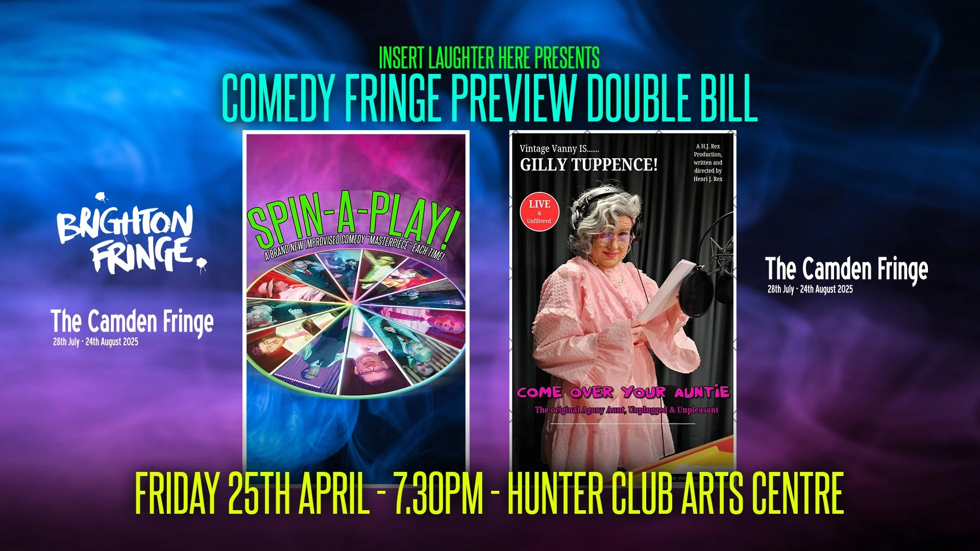 Insert Laughter Here proudly presents a special Comedy Fringe Preview Double Bill - two hilarious shows in one night!